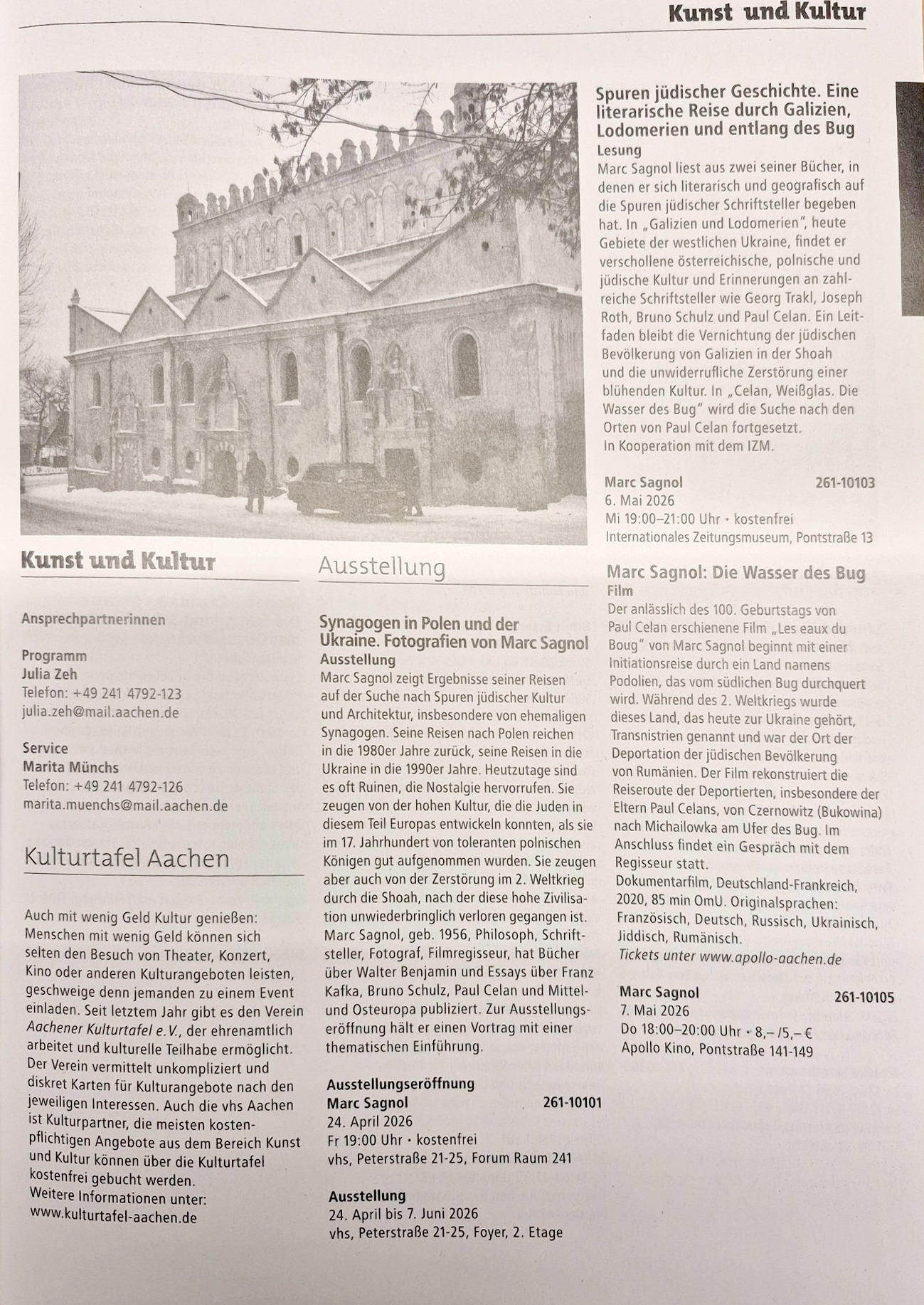 Im Jubiläumsprogrammheft der vhs Aachen 1/2026 wurde im Themenbereich Kunst und Kultur über das Angebot der Kulturtafel berichtet.